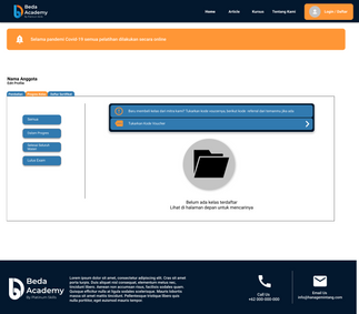 Deskripsi: Platinum Skills Malang, ingin membuat suatu perancangan website yang bertujuan untuk pendaftaran pelatihan, informasi dan company profile untuk BEDA Academy. BEDA Academy merupakan produk dari Platinum Skills yang dikhususkan untuk pelatihan soft skill masyarakat. Berbeda dengan Platinum Skills yang hanya untuk area Malang, BEDA Academy ditujukan untuk seluruh Indonesia, karena pelatihannya dilakukan secara online maupun offline.